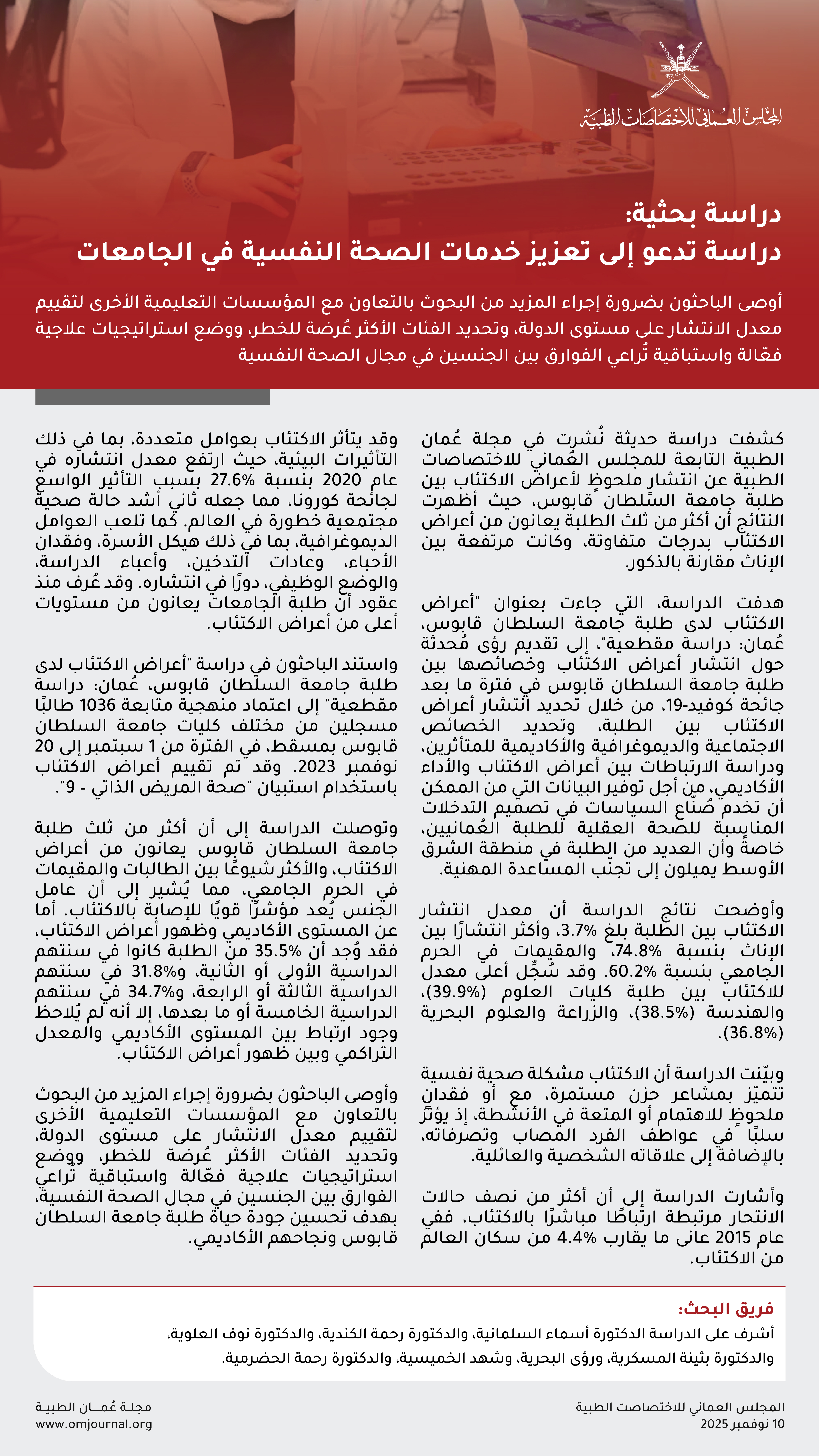 دراسة بحثية تدعو إلى تعزيز خدمات الصحة النفسية في الجامعات