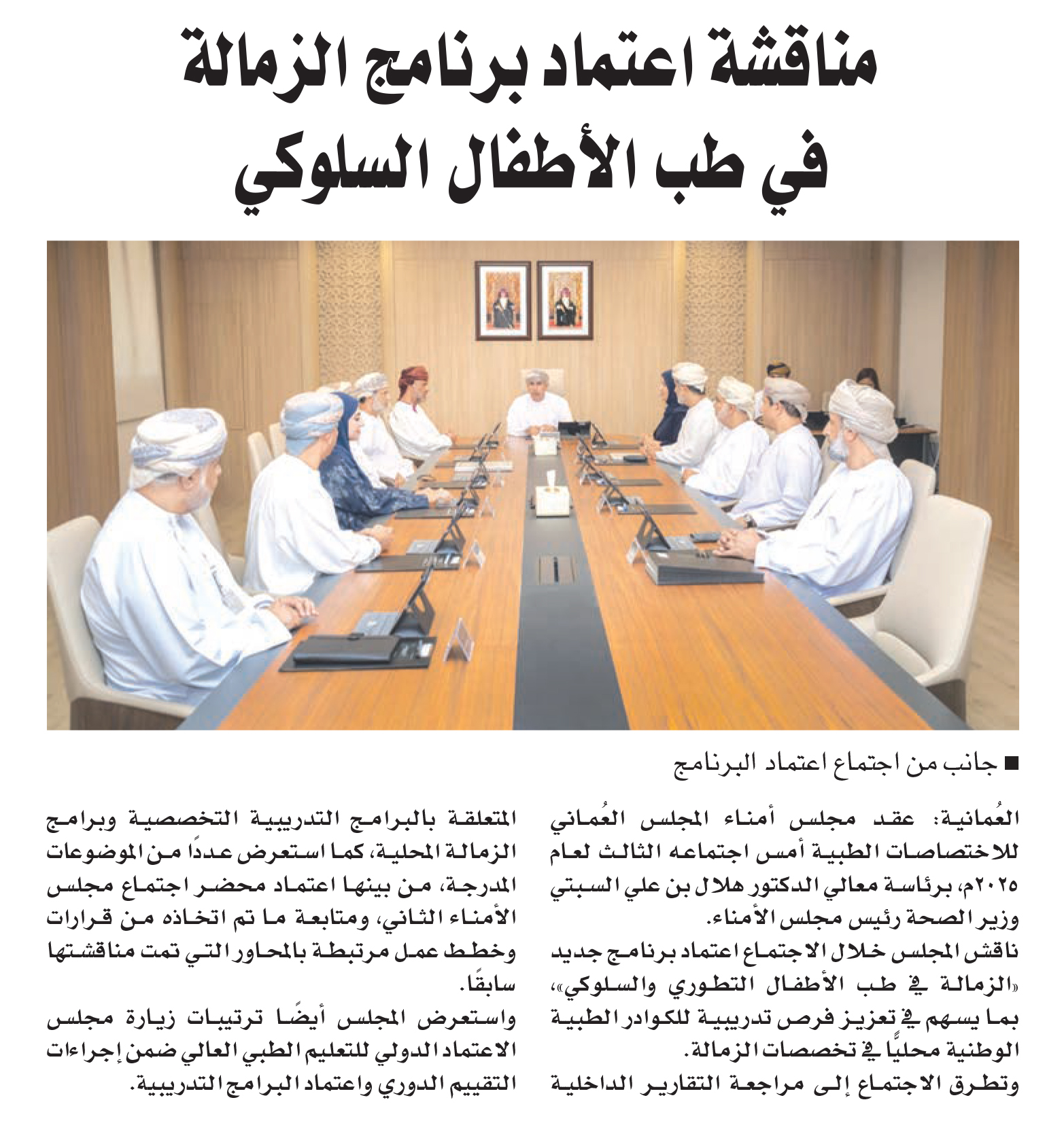 الاجتماع الثالث لمجلس أمناء المجلس العماني للاختصاصات الطبية لعام 2025م