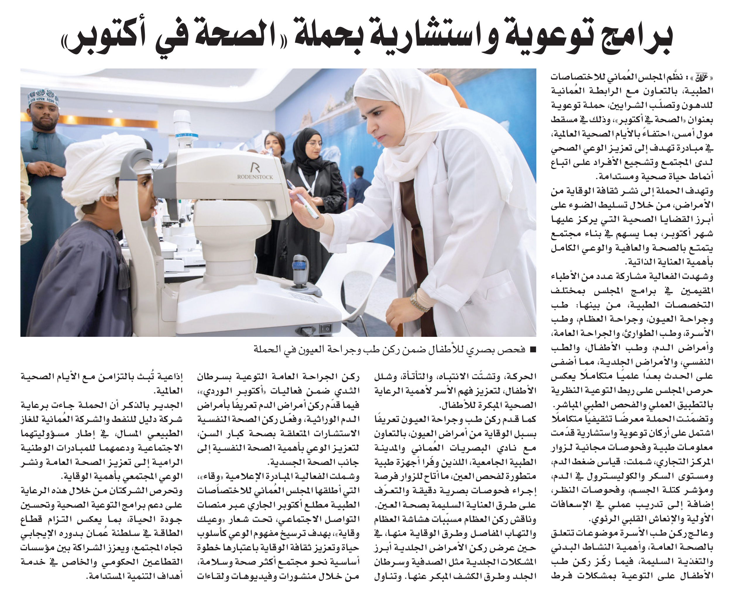 برامج توعوية واستشارية بحملة الصحة في أكتوبر