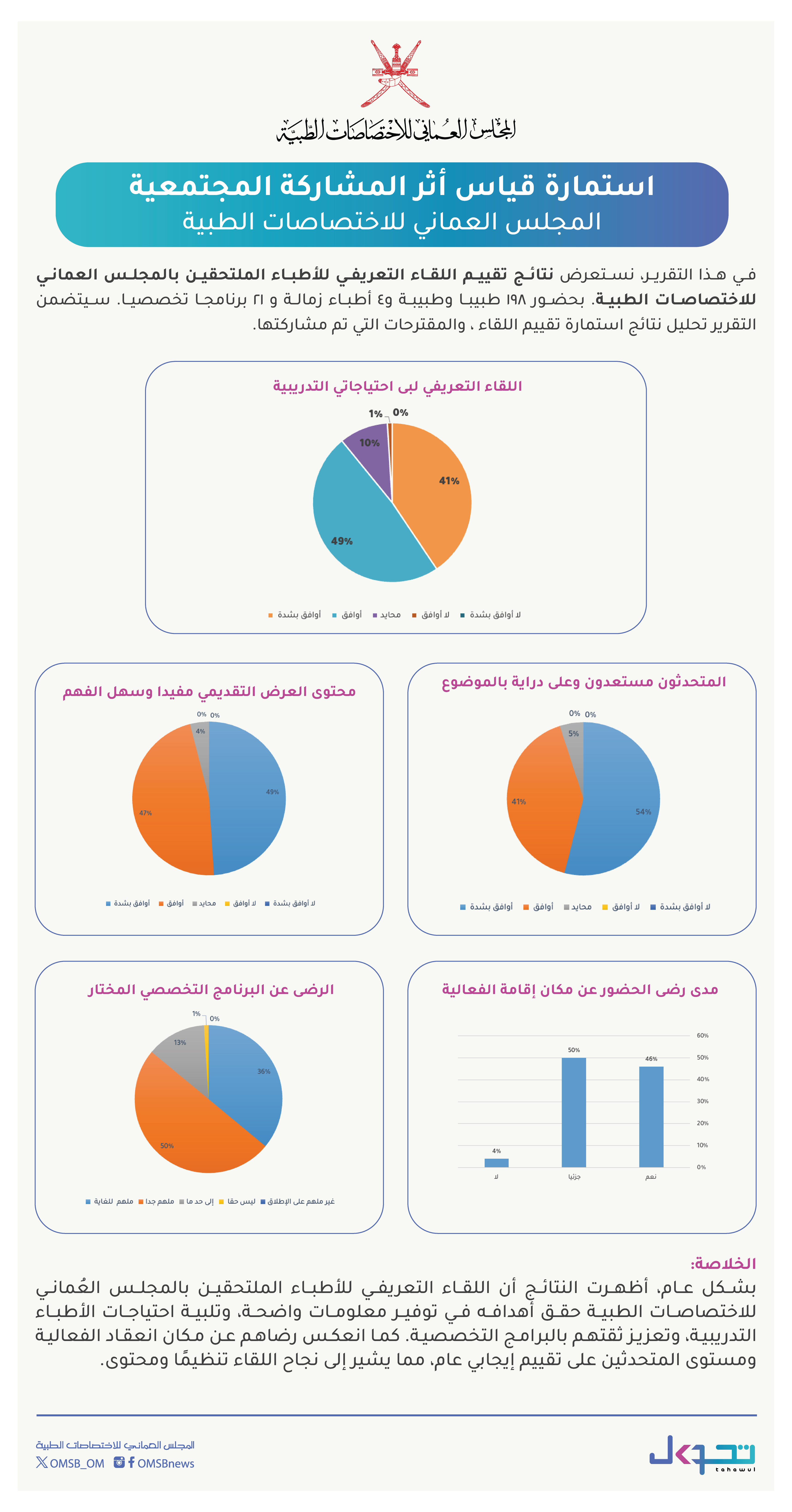 موضوع المشاركة المجتمعية: تقييم اللقاء التعريفي للأطباء الملتحقين بالمجلس العماني للاختصاصات الطبية